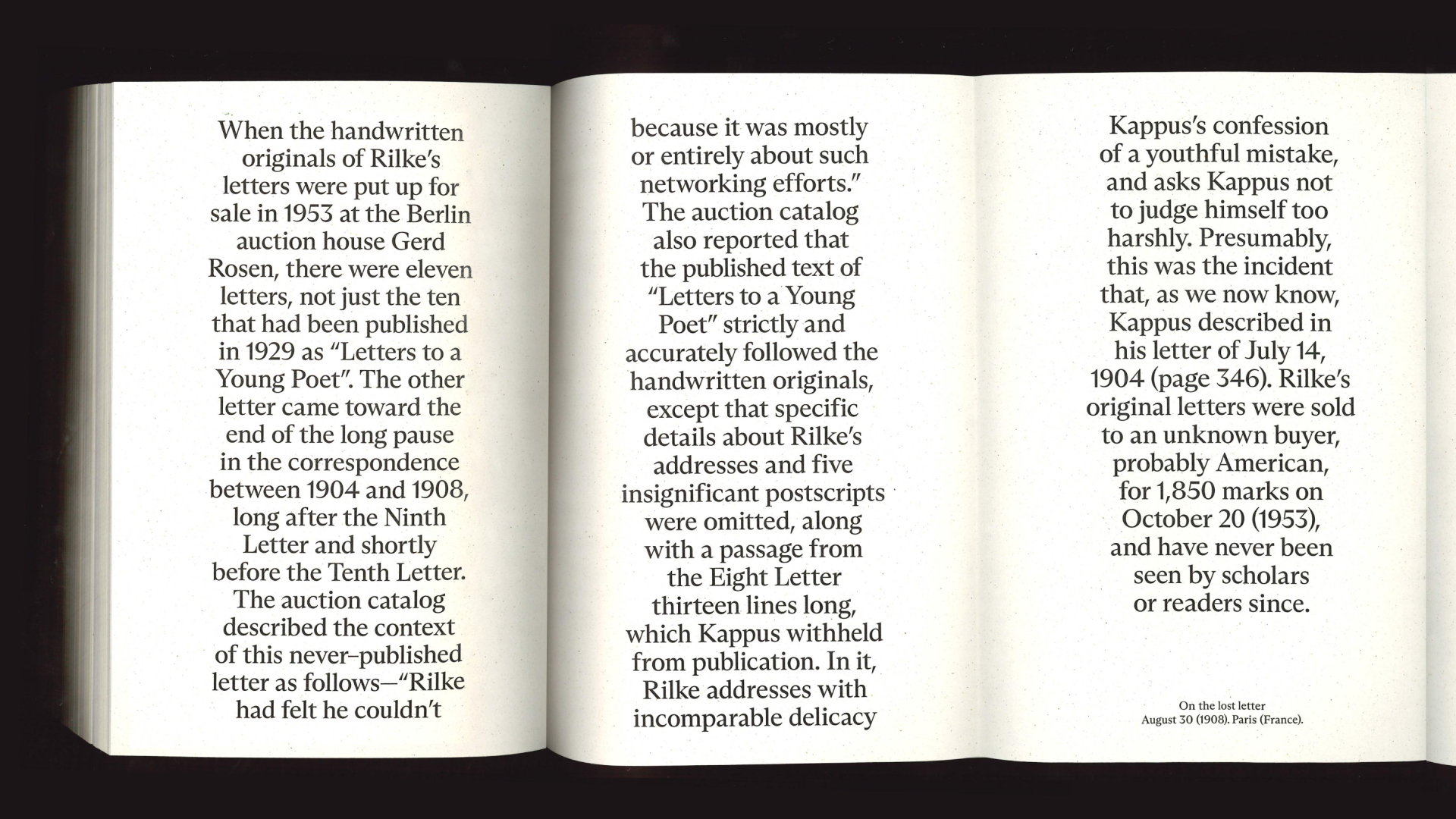 A contemporary perspective on the correspondence between Rainer Maria Rilke and Franz Xaver Kappus. A book about communication through time and distance, loneliness and self-discovery.